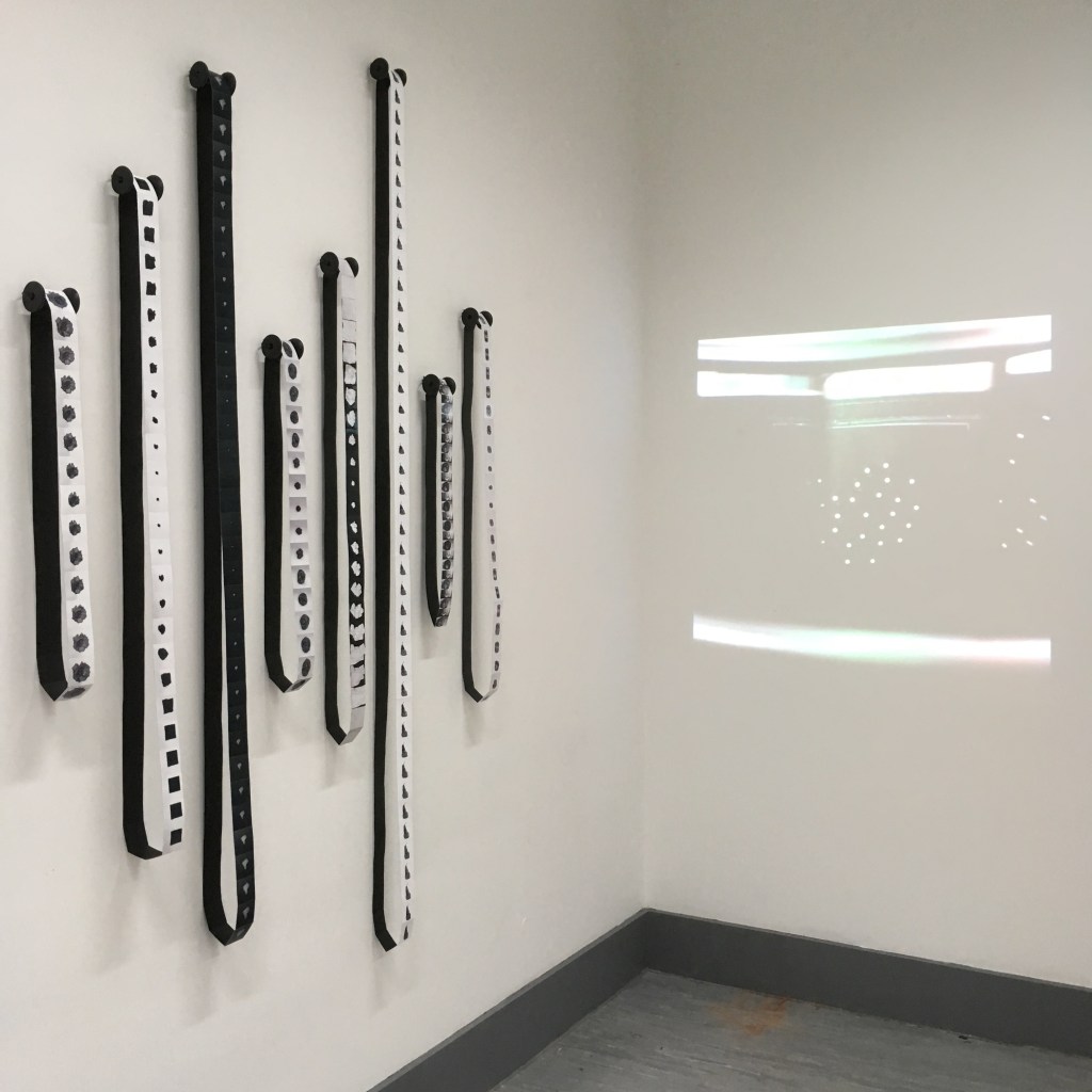 These are photographs assembled in a continuum, over a wooden spool in a loop. Each photograph captures a slight change in an object (time-lapse). The changes can be observed all at once or individually and in no particular order as the viewer manipulates the strips back and forth.