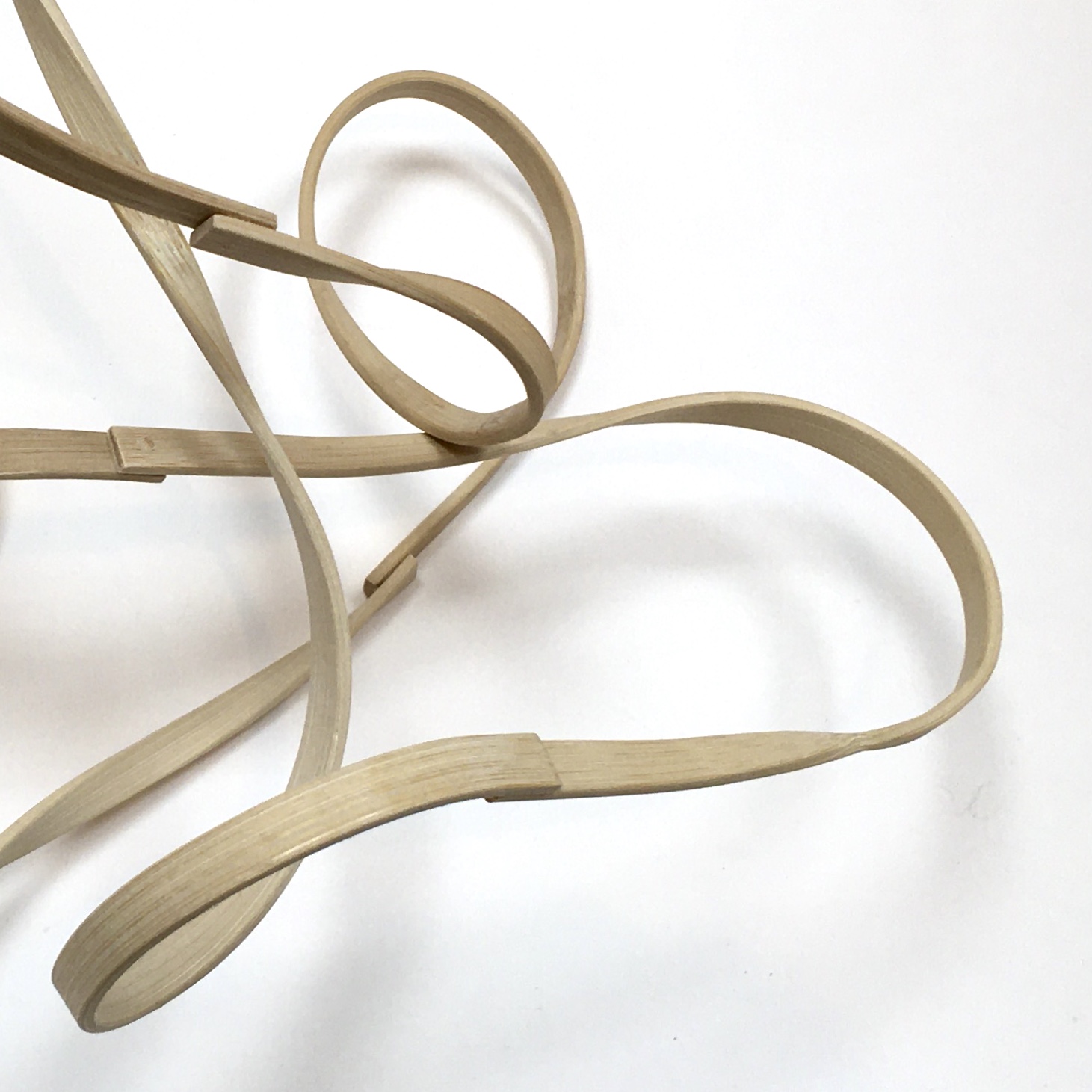 Wood is organic and was once part of a living tree, growing, eating, moving and reproducing and, with heat and water, it can be bent and retain its form. The bending process re-enacts certain orientations that the plant may have taken when alive to adapt to its environment in search of light, water or nutrients. As such, the process captures the energy the plant would have deployed in the past to adapt and stay alive. Working with wood in this way is quite exciting because it gives a sense that the order of things is being challenged and it brings the wonder of Einstein’s emotional quote to mind that ‘the distinction between past, present, and future is only a stubbornly persistent illusion.’ Einstein wrote this in 1955 in a letter addressed to the sister in the family of his best friend (Michele Besso) who had just died.
